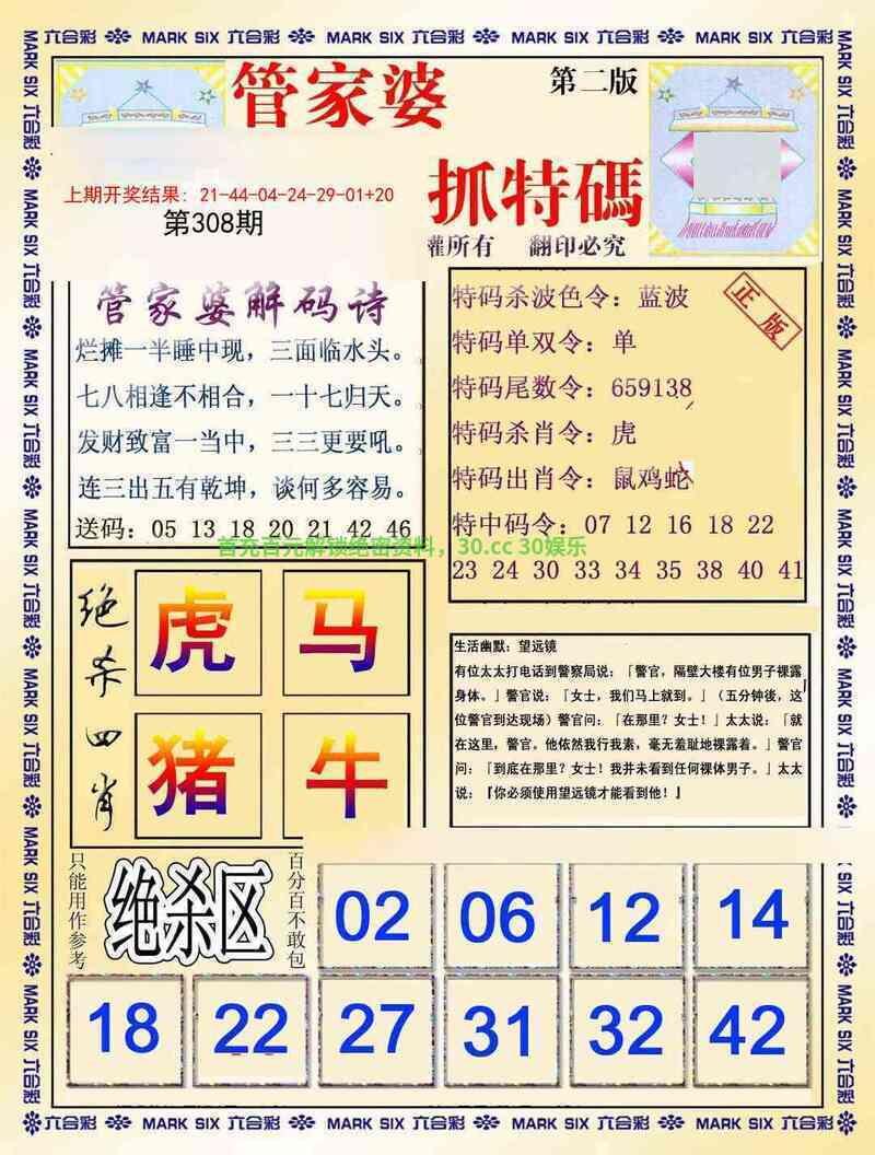 | 306期:家野两肖【家禽+龙蛇】开:牛17准 |